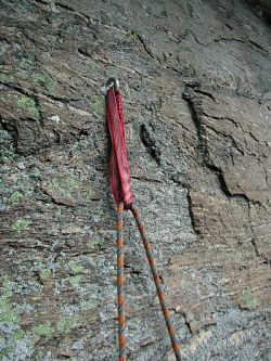 - Do smyčky je opět možné vložit dvě zámkové karabiny nebo dvě expresky protisměrně, pro menší opotřebení lana