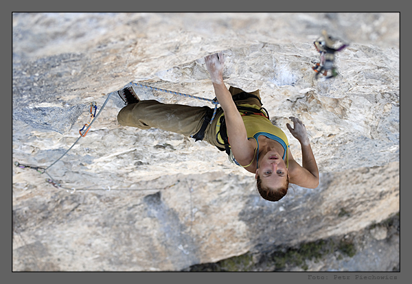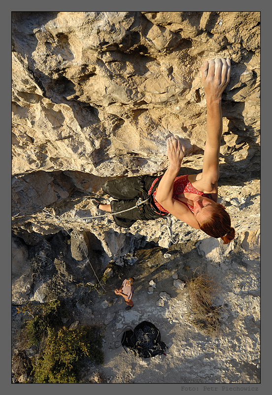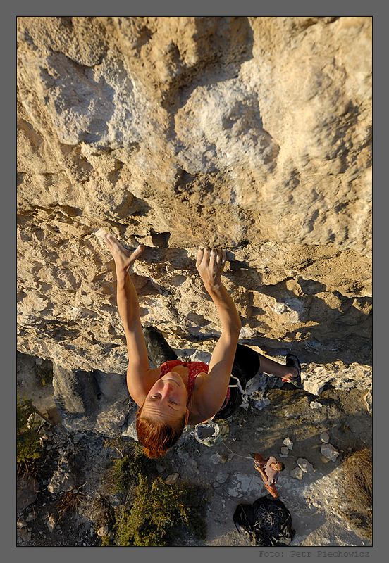Protože mám hrozný blok z čísel. Vidim 8a a myslím, že na to nemám a nejsem schopna se do toho navrtat. Cestu „Planéte Groove“ v Tarnu jsem vylezla na flash, protože jsem tam byla s lidma, co lezli těžší cesty, tak trochu mě k tomu dotlačili. A v Juře jsem SMS vylezla s Víchancem a spol. Prostě by to chtělo víc „no fear“ a navrtat se klidně do těžších projektů.