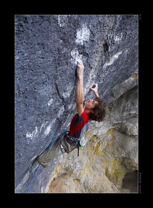 Adam k  přelezu potřeboval osm pokusů a použil jiné sekvence, než prvovýstupce a prvopřelezce Markus Bock.