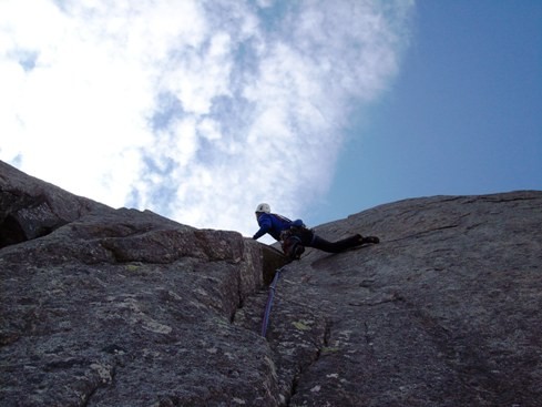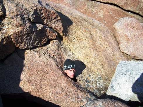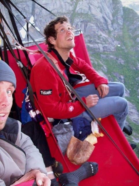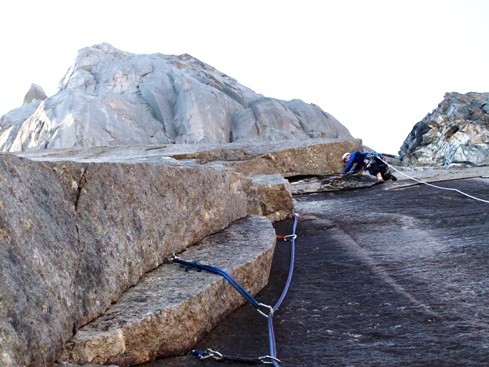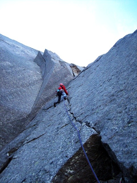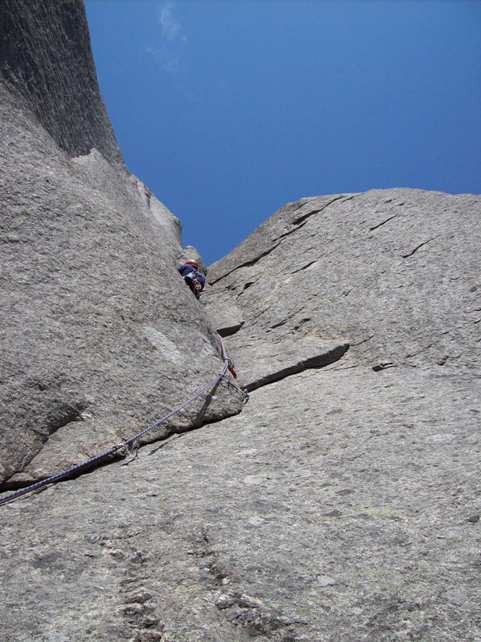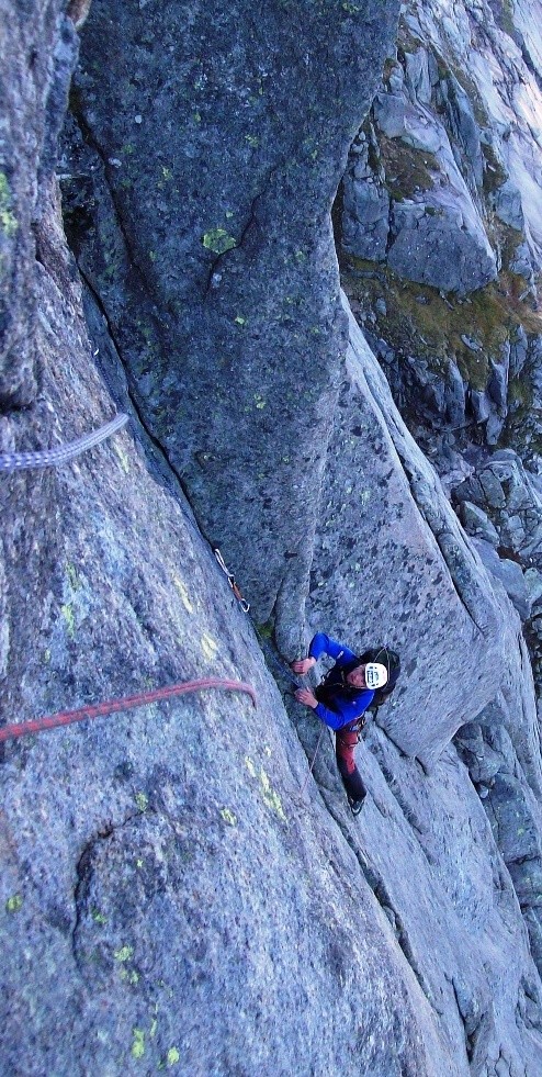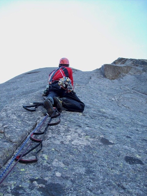 Vůbec nejakčnější fotka z celé cesty. Převislá trhlinka, divoká pozice, spousta kyslíku okolo, škoda že to nevidíte :-). Podle Roberta prý 8, ale znáte to.