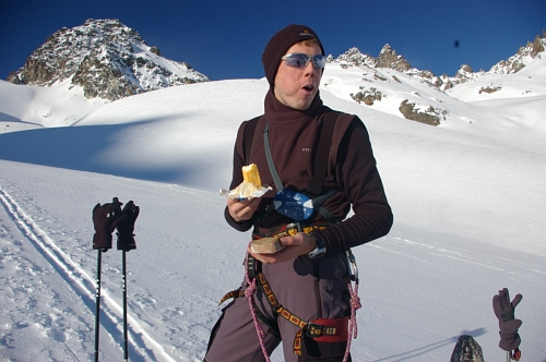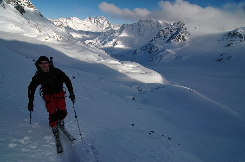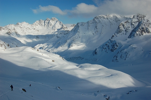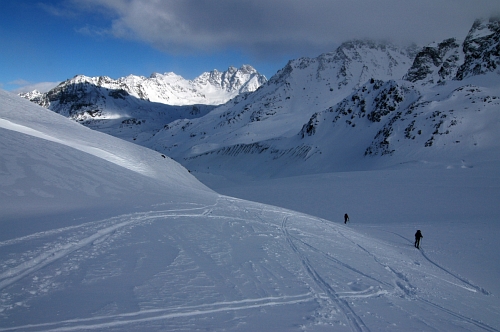 Sjezd jsme si patřičně užili mimo část do sedla Urezzajoch, která představovala tvrdou roletu se všelijakými větrem vymodelováni útvary. S lehkými skialpovými lyžemi patřičně příjemný úsek. Točit v tom moc nešlo, rovná lajna byl boj nehodit řádnou držku na jedné z těch vln. Za dobrého počasí velmi vděčná túra pro začátečníky.