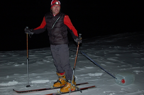 Opětovně jsme to namířili do dědiny Galtür. Zde jsme plánovali přespat v luxusu spacáku. Když teploměr ukázal -20°C a teplota dále klesala, tak už jsem se na číslo raději neptal. Někdo měl spacák z tisíce hus od Tufiho ženy, a tak byl vysmátý (Ochránci zvířat by asi moc nebyli, kdyby viděli tu tlustou svini, před kterou by i velký Sir Rákoska zblednul.) a někdo jiný jako já letní spacák o objemu třech dutých vláken. Co bych tahal nějaký peřák, když na chatě bude teplo, že ano!?