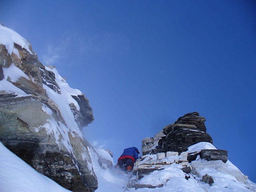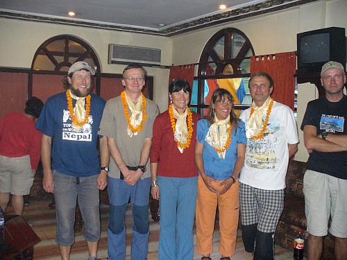 Nebyt vystupu standardni cestou, jednalo by se o pekny alpsky styl, ale nam je to ted trochu jedno, lehce a rychle, jen vlastnimi silami jsme na vrcholu krasne hory. Ve stejny den jsou s nami na vrcholu i vsichni clenove Sulovskeho expedice, a tak je v jednom dni na vrcholu 9 Cechu, a to je asi Himalajsky rekord.