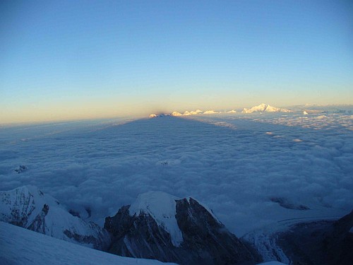 Stín Cho Oyu ráno při výstupu asi 7700