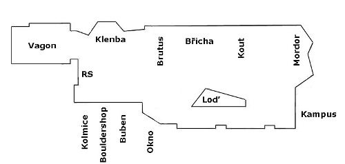Kde se leze: Brutus, Klenba, RS, Bouldershop, Buben a Okno