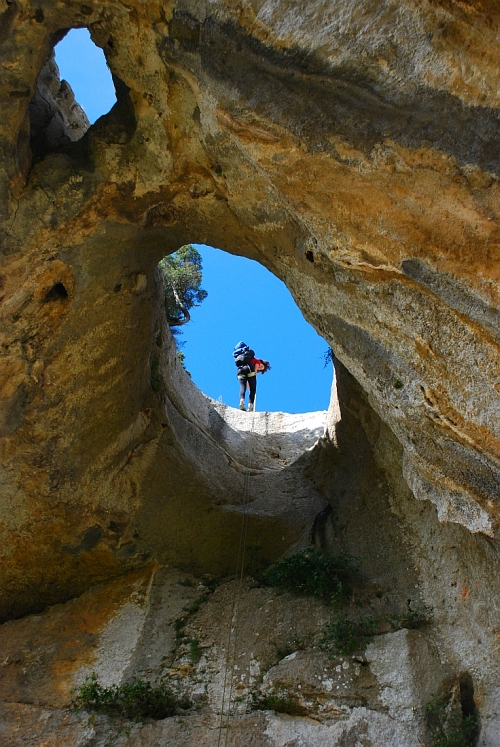 Russan jeden z možných přístupů, slanění dírou ve stropě jeskyně