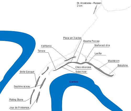 Jednou z významných a tradičních lezeckých oblastí v provincii Gard je rozložitý skalní útes 20 km severně od města Nimes. Nachází se v těsném sousedství vesnice Sainte Anastasie v majestátním zákrutu řeky Gardon.