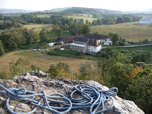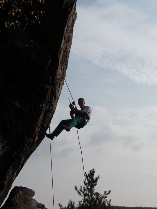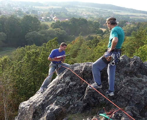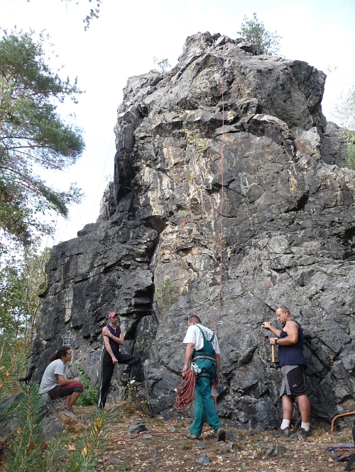 Vyměnit celkem 21 jištění, to znamená 21 nových borháků bylo osazeno a bylo uklizeny odpadky kolem skal a odstraněny nějaké nálety.