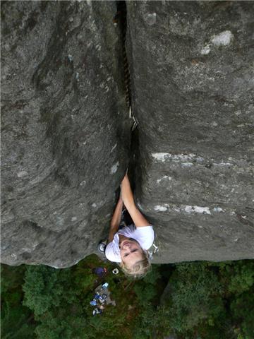 Už jako malý špunt jsem jezdila s rodiči a kamarády do skal. Nejvíce jsme lezli ve skalním království v Tisé, které máme pár minut od našeho baráčku. Takže k lezení mě přivedli rodiče, kamarádi a nádherné Tiské stěny.