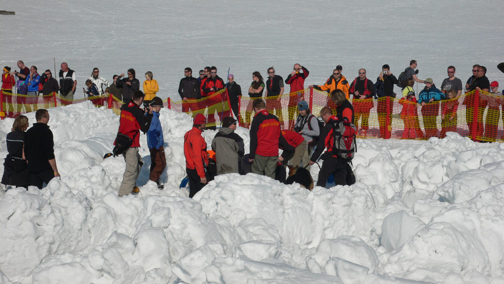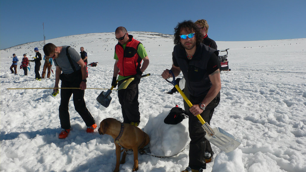 -  praktické nácviky a ukázky (hledání pomocí lavinových vyhledávačů, sond, Recca, ukázka práce lavinových psů)