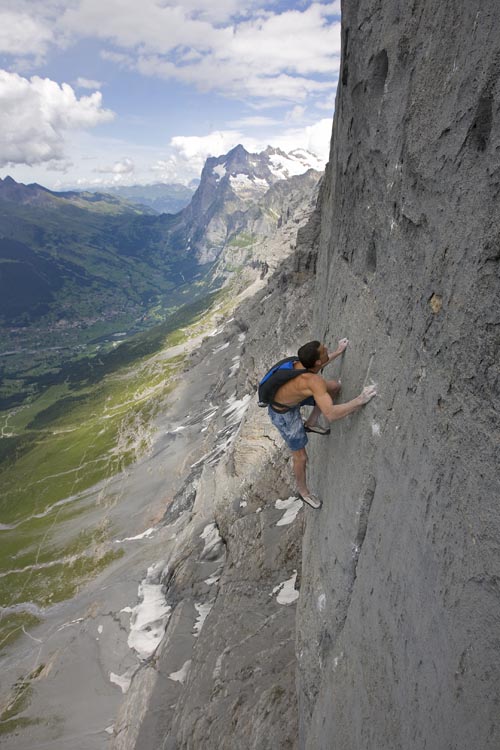 Deep Blue Sea (7b+), severní stěna Eigeru, base-solo