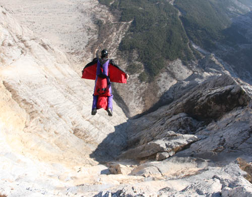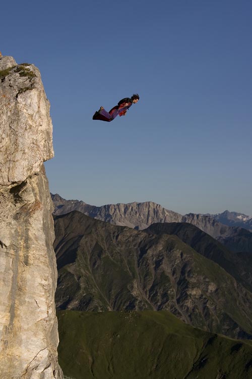 Dean Potter, basejump, Drusenfluh, Rätikonu, Švýcarsko.