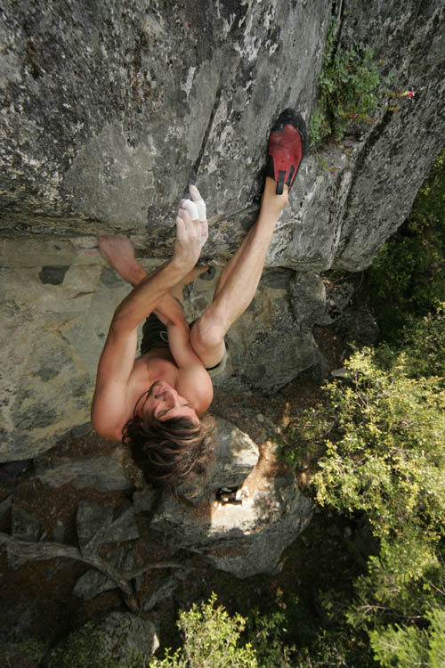 Dean Potter leze free solo cestu Dog Roof 5.12b v Yosemitech.