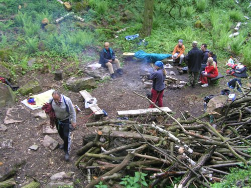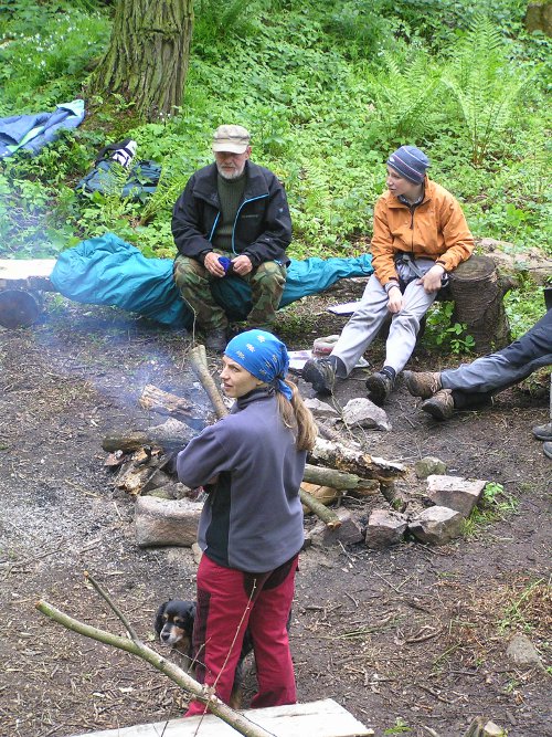 Mezi prvními dorazili Míra a poté i Dědek Zdeněk Hubka, takže bylo kde se ohřát a i víno se dalo popít. Ale taky Zelinář, něco žen a pár lidí kteří se mi rovněž představovali:) Zásoby dříví jsou bohaté, neboť Dědek se Zelinářem snosili během prospektorských prací všemožné větve od skály a podle jejich slov si řádně mákli než mohla skála volně dýchat, pak následovalo asi dvouleté pearcingové období, ruce přiložili i Rasta a Ali.