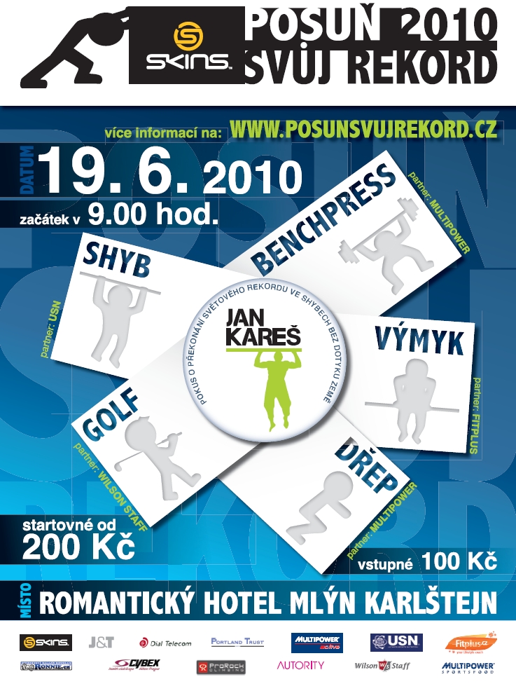 Akce se bude konat v sobotu 19. června 2010 od 9:00 hod. v areálu romantického hotelu Mlýn na Karlštejně. Srdečně zveme každého, kdo se chce poměřit nejen s ostatními, ale především sám se sebou a zároveň podpoří Jana Kareše v pokusu o překonání dalšího světového rekordu.