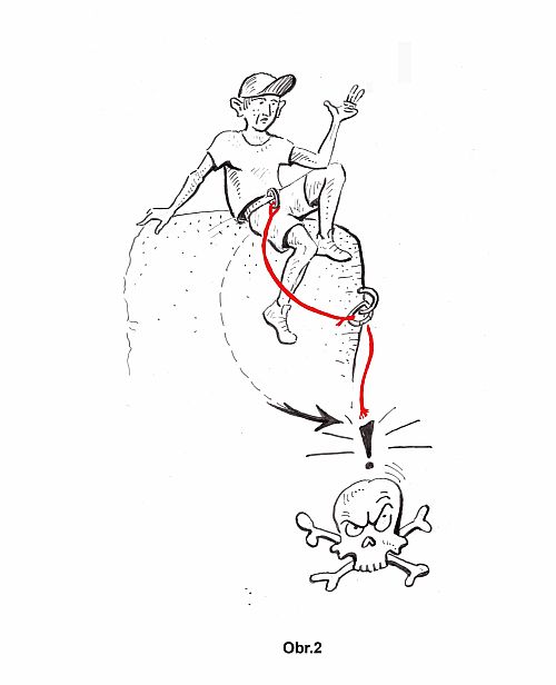 - Odsedka „po domácku“ uvázaná z lana, nemá garantované (testované) hodnoty, uzel na konci, navíc výrazně snižuje její pevnost (až o 60%).