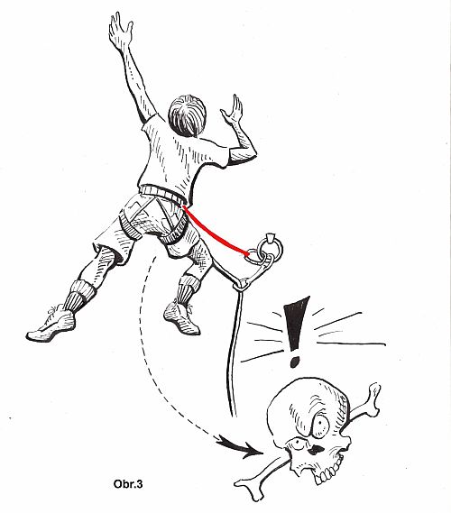 Spadne-li  prvolezec kousek nad štandem, spadne přímo do vašeho jištění s nejhorším pádovým faktorem (strašná rána).  Jste-li zajištěni statickou odsedávačkou, zatížení štandu je obrovské a hrozí jeho poškození.