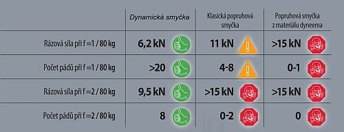 Je to dáno tím, že nejsou pružné a tak v případě pádu, třeba jen malého, hrozí vysoké zatížení. Pro představu: nadleze-li  lezec  smyčku o délce 75cm, hrozí mu pád maximálně 150cm, který odpovídá pádovému faktoru 2.  Představte si takový pád na betonovou podlahu na záda a vše vám hned dojde. V tabulce naleznete několik zajímavých hodnot při zatížení pádovým faktorem 1 a 2 na různých typech odsedávaček .