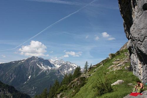 Ve dvou tisících metrech nad mořem je nádherná stěna, takové malé Ceuse. Okolní nejvyšší vrcholy Alp, krásná příroda a opravdu klid od lidské civilizace a spousty lezců, které obvykle potkáte v Ospu nebo Arcu.
