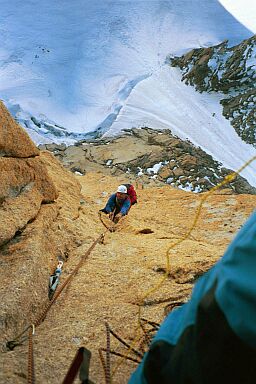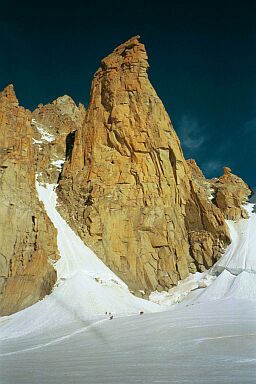 Přístup:  Ze Chamonix lanovkou na Aiguille du Midi, potom pěšky 3 hodiny pod Capucina, kde je pro postavení stanu místa dost.
