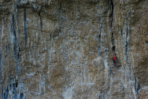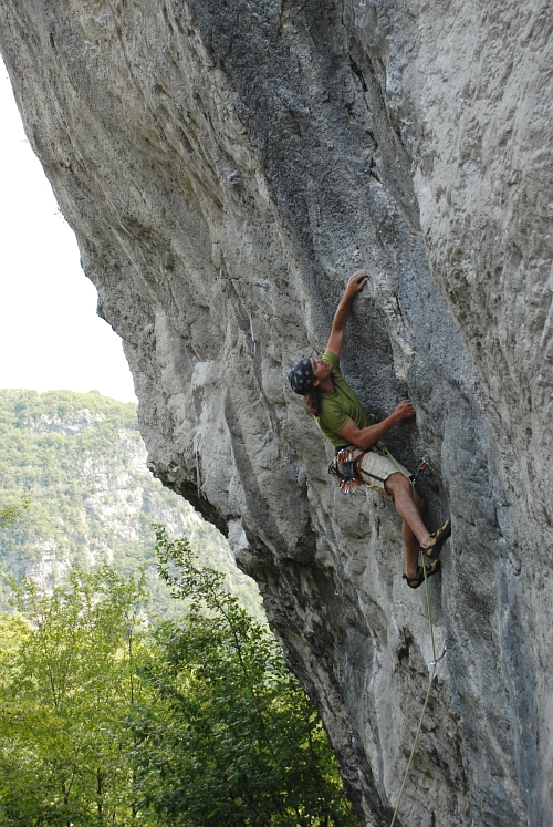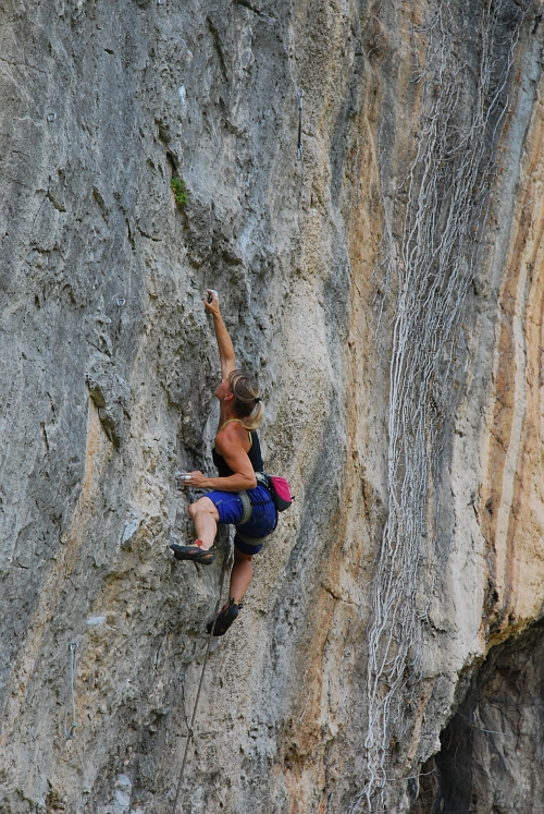 Il Topo 7a: Vytrvalostní lezení se silovými kroky v převise.
