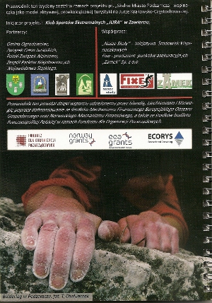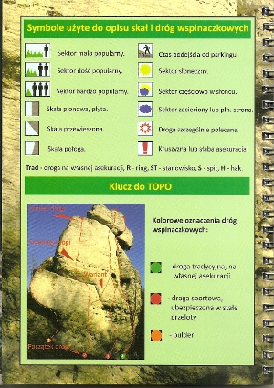 - za příspěvek 4 zl na účet místního lezeckého klubu. K platbě je nutné napsat vaší adresu a účel: "Darowizna na rzecz klubu". Na internetu je uvedený tento kontakt: "Klub Sportów Ekstremalnych Jura w Zawierciu, Ul. Parkowa 4/63, 42-400 Zawiercie, Rachunek: ING Bank Śląski 82 1050 1591 1000 0023 0296 4875". Jen tedy nevím, zda-li počítají s poštovným do Čech, doporučuji tedy nejdřív zjistit;