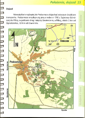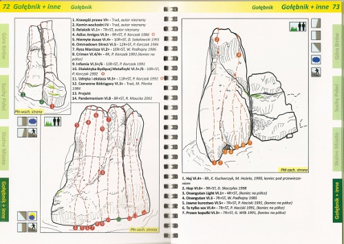 Průvodce je rozdělený na čtyři části: Góra Birów, Suchy Polec, Skalne Miasto a Golebnik + inne. Cesty na vápenci jsou v polské klasifikaci. Můžete si vybrat jak sportovně odjištěné cesty, tak cesty po vlastním. Mezi prvovýstupci jsou také například Tomáš Pilka a Tomáš Čada. Mezi nejzajímavější a nejtěžší stěny patří Malá a Velká Čima. Podle statistiky je v Podzamcze mimo projekty: