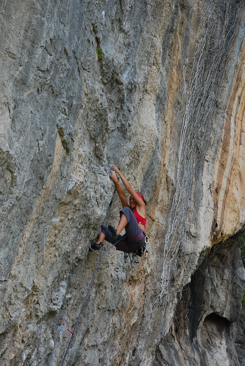 Neznámá lezkyně v cestě 7a, ve staronové oblasti Calvaria