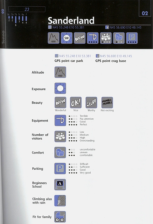 Kniha je také doplněna o několik zajímavých rozhovorů. První s Fabio Leonim, což je místní lezecký guru a route setter, dále je zde rozsáhlý rozhovor se známým špičkovým lezcem Andreasem Bindhammerem, průvodce je opět korektně nakreslený, vybavený veškerou užitečnou symbolikou a praktickými informacemi o přístupu a kvalitě oblasti.