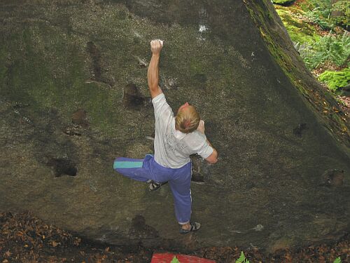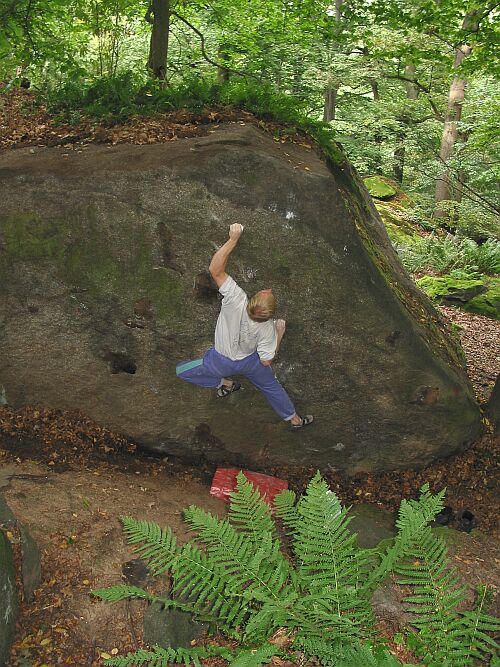4) Nočník (převislý a kolmý balvan se všemi druhy lezení, převládá silové po dobrých chytech)