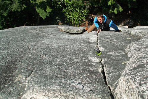 Asi padesát kilometrů severně od Vancouveru se ve stínu Mt.Garibaldi, která se tyčí do výše přes 2700 metrů nad údolím, nachází městečko Squamish – po většinu roku docela „díra“, ale se svým statutem „Outdoor capital of Canada“ v létě poměrně dost ožívá. Kromě skvělých cyklistických terénů a divoké vody je hlavním lákadlem 600 m vysoký žulový monolit zvaný Chief a okolní menší skalky, které tvoří Kanadskou lezeckou oblast číslo jedna. Je tu opravdu všechno, co si jen lezec může přát - od stovek boulderů, přes lehké, zajištěné cesty až po dlouhé tradiční vícedélky, stěny, rajbásky, extrémní převisy a hlavně, jak už to v žulových oblastech bývá – spáry. Spáry jsou ve Squamishi naprosto excelentní lezení a skvělá volba i pro nás spáraře začátečníky. Všechny spáry, které jsem lezl byly perfektně zajistitelné a často se pouze klikatí stěnou či mají spoustu bočních stupů, takže je to skvělé lezení pro kohokoliv. Celou 600 m vysokou stěnou vedou desítky cest, z nichž jsou mnohé lezitelné i pro nás smrtelníky. Z lehčích cest je nádherná Angel's crest 5.10c s několika spárovými délkami 5.10a a 5.10b. Nejtěžší místo 5.10c je ale pouze jeden krok ve stěně a ještě je u něj nýt. Beze spěchu se to dá vylézt za 9 hodin, za další hodinu se to dá zadem seběhnout do kempu. Nejpopulárnější těžší cestou je potom nádherná, skoro přímá linie „Grand wall“ s obtížností 5.11a A0, ale pouze jednu krátkou délku je potřeba hákovat. Zbytek cesty je čisté, vyvážené lezení – od pohledu je to jedna z nejhezčích linií, kterou jsem kdy viděl a opravdu se těším až si ji jednou vylezu.