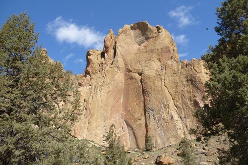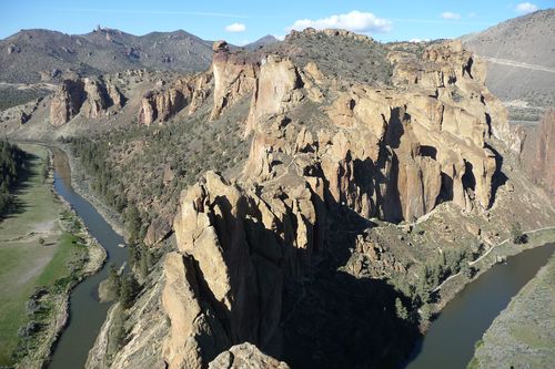 Pohled na Smith rock, vlevo vzadu vyčnívá dominanta "Monkey face" s lezecky velmi náročnou údolkou
