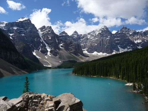 Lake Louise je nádherné horské jezero s překrásnou, smaragdovou barvou. Je pojmenované po dceři královny Viktorie a dnes dává jméno jednomu z nejturističtějších míst v celé Kanadě, malé vesničce a lyžařskému areálu. Nachází se v NP Banff v srdci kanadských Rockies. Jezero je ze všech stran obklopeno neuvěřitelnými stěnami třítisícových hor, které skýtají nespočet obtížných vysokohorských výstupů. Opodál majestátní Mt. Temple se svojí skoro 1800 m vysokou stěnou je opravdu hodnotným horolezeckým výkonem. Vzhledem k drsným Kanadským podmínkám je ve vyšších místech až do konce července a od půlky září spoustu sněhu, takže sezona pro vysokohorské lezení je opravdu krátká.