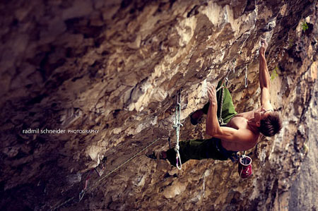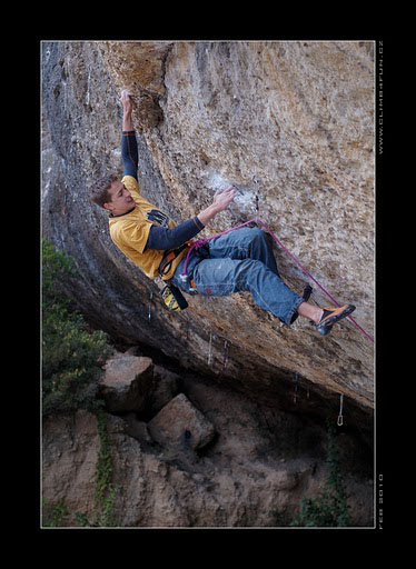Ondra v cestě Photo-shot 8b, Margalef, Španělsko