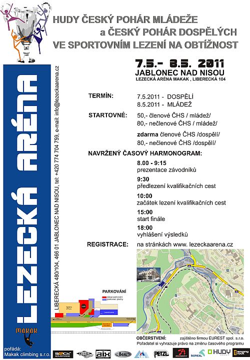 7. a 8. 5. 2011 se budou konat v nově otevřené lezecké aréně v Jablonci nad Nisou závody Českého poháru v lezení na obtížnost a Hudy Českého poháru mládeže.