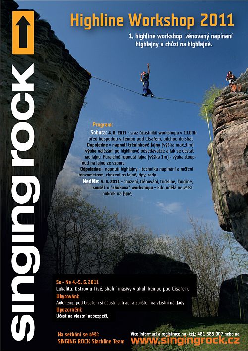 O víkendu 4. - 5. 6. 2011 se chystá 1. highline workshop tohoto druhu věnovaný napínaní highlajny a chůzi na Highlajně pro širokou veřejnost.