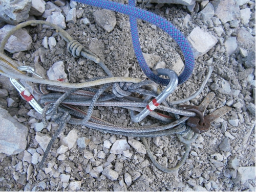 Po ohledáním terénu jsme se rychle dopátrali vysvětlení. Oba byli společně “cvaklí” na štand viz. foto níže. Když začal jeden z nich slaňovat, došlo k vytržení celého štandu. Následný asi 30 - 40 m dlouhý pád byl neodvratný.