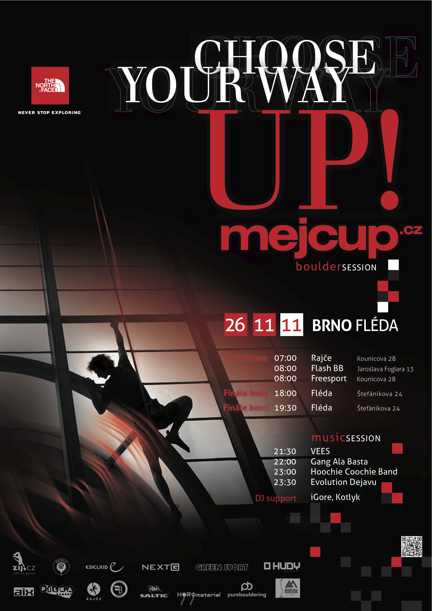 Na koho to bude moc, může si na Flédě na dvorku odfrknout v expedičním stanu generálního partnera  Mejcupu – firmy The North Face. Ceny pro vítěze dodá The North Face, Edelrid, Saltic, Greensport a Horomateriál. Děkujeme také za podporu firmám Faster.cz a Hudy sport Brno a Žij.cz!
