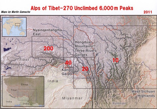Na území Tibetu a západních částí Číny podnikl přes třicet expedic, během kterých objevil, zlezl a zdokumentoval bezpočet do té doby neznámých vrcholů. Odlehlé hory na východě Tibetu v hraniční oblasti s Čínou nazývá také „Tibetské Alpy“. Vrcholy zde dosahují výšky přes 6000 m a vyznačují se krásnými tvary. Do map například zakreslil již 270 takovýchto neznámých šestitisícovek.