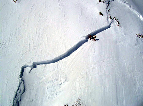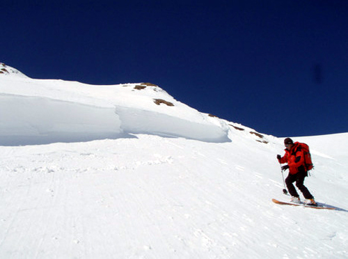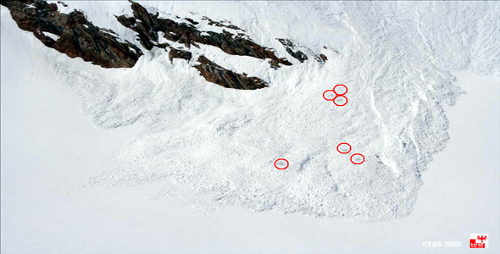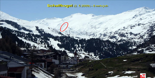 Fotografie s nákresem situace, která vedla k velkému neštěstí dne 2.5.2009 na svazích Schalfkogelu (3 540 m) v Ötztálských Alpách, se dostala na obálku knížky: Lawine, Die 10 entscheidenden Gefahrenmuster erkennen (Rudi Mair a Patrick Nairz), loňské novinky mezi lavinovou literaturou (této knížce se budu věnovat příště). Tato nešťastná událost vyvolává neustále zájem medií a to především v Rakousku. Není to samozřejmě náhodou, jedná se o nejhorší lavinové neštěstí v Tyrolsku za posledních 12 let. A to je dostatečný důvod, aby se této události věnovalo více místa než ostatním smrtelným lavinovým neštěstím posledních zim. Nás se to bohužel týká proto, že v této lavině na úplném konci zimy roku 2009 zůstalo 5 kluků z Čech a 1 ze Slovenska.