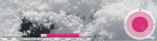 Lavina: desková lavina (suchá) / délka cca 500 m / šířka maximálně 170 m / výška odtrhu 0,4 – 1 m / hloubka zasypání 1 - 2,2 m