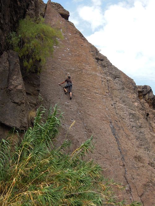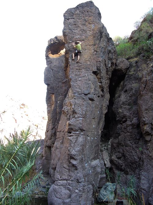 Ne příliš rozsáhlá oblast, opět nedaleko Las Palmas. V centrální stěně je pěkné lezení a nejtěžší cesta na celách kanárech, myslím, že ji udělal Steve McClure a je za 8c a jmenuje se Meneo Canario. Vede po té bombastické hraně.