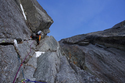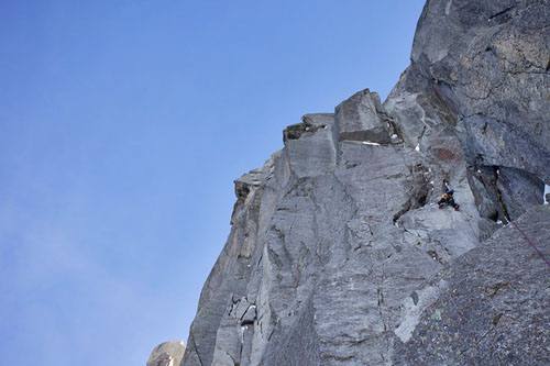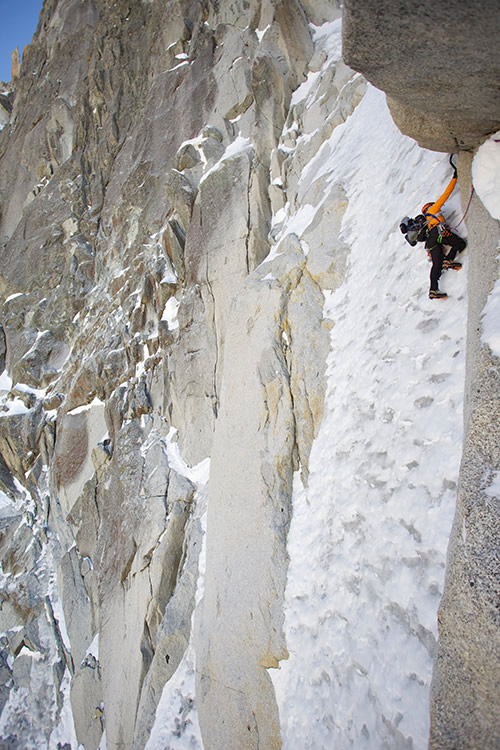 Švýcarská „mašina“ Ueli Steck a anglický lezec a fotograf Jonathan Griffith uskutečnili první volný přelez cesty Voie Lesueur (ED3, M8+, 900 m) v severní stěně Petit Dru (3754m).