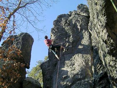 Musim se podelit s cerstve nabytym zazitkem. Dostal jsem se za vyrazne pomoci kamaradu na Greifensteiny v nemecku, je to pres K. Vary n aJachymov, prechod Bozi Dar/Oberwiesenthal - pak na Chemnitz a kousek za Annabergem doleva. Nadherny skalky ze superpevny zuly, vysoke az 30 metru. Mezi nimi je amfiteatr, kde se o vikendecha tak ruzne hraje ( je treba prestat lezt ;o(, je tu placene parkoviste, zachody za 20 centiku, takze kdyz ma nekdo prujem a musi po k ... celý článek
