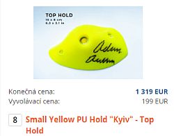 Za cenu 769 až 1319 eur za jeden se vydražily lezecké chyty na aukci, kterou včera uspořádal Adam Ondra ve prospěch sbírky na podporu Ukrajiny. Dražilo se osm chytů, které Adam sám navrhl, odlil a podepsal. ... celý článek