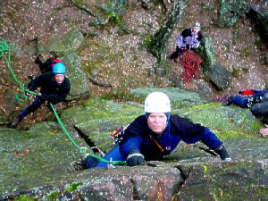 Přestože teplota se pohybovala pod bodem mrazu bylo dost odvážných, kteří vybalili lana a sápali se po vymraženeném buližníku.