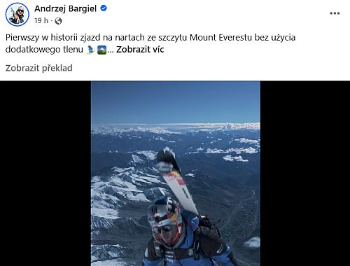 Polský extrémní lyžař a horolezec Andrzej Bargiel jako první člověk na světě úspěšně sjel Mount Everest (8 848 m) na lyžích bez použití umělého kyslíku. O úspěchu Andrzej informoval včera na sociálních sítích, např. na Facebooku zde: ... celý článek
