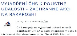 Vyjádření ČHS k pojistné události - záchranné akci na Rakaposhi