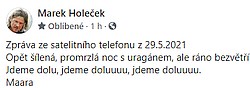 Mára Holeček a Radek Groh přežili na Baruntse v 7000 m další noc za vydatného sněžení, stan vyhrabávali ze sněhu rukama a upínají se k sobotě. Informovali o tom dnes večer na FB: ... celý článek