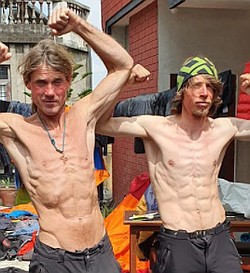 Mára Holeček a Radek Groh jsou po úspěšném prvovýstupu Z stěnou na vrchol Baruntse a následném sestupu, při kterém je zadrželo na 4 dny ve výšce 7000 m špatné počasí, už v
